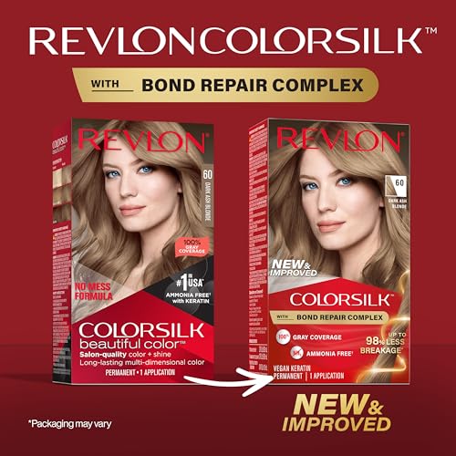 Revlon ColorSilk with Bond Repair Complex, Blonde Permanent Hair Color, 100% Gray Coverage, Ammonia Free Hair Dye, Vegan Keratin, 60 Dark Ash Blonde (Pack of 3)