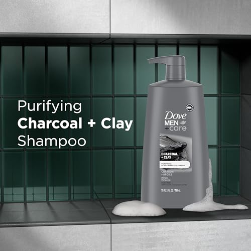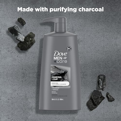 DOVE MEN + CARE Shampoo Charcoal + Clay 3 Count For Healthy-Looking Hair Naturally Derived Plant Based Cleansers 25.4 oz