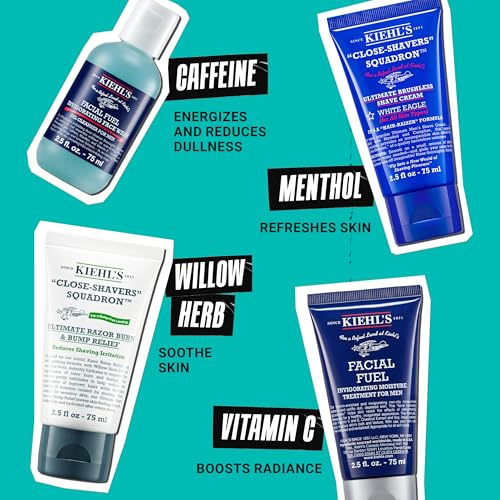 Kiehl’s Men’s Shaving Regimen Gift Set – $88 Value Including Face Wash, Shaving Cream, After Shave Gel & Face Moisturizer – For All Skin Types