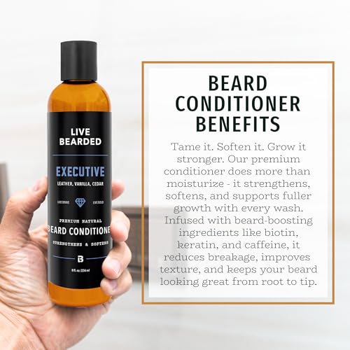 Live Bearded Beard Conditioner, 8 fl oz – Strengthens and Softens Facial Hair – Made in the USA – All-Natural Ingredients with Biotin, Caffeine | Executive Scent – Cedar, Vanilla