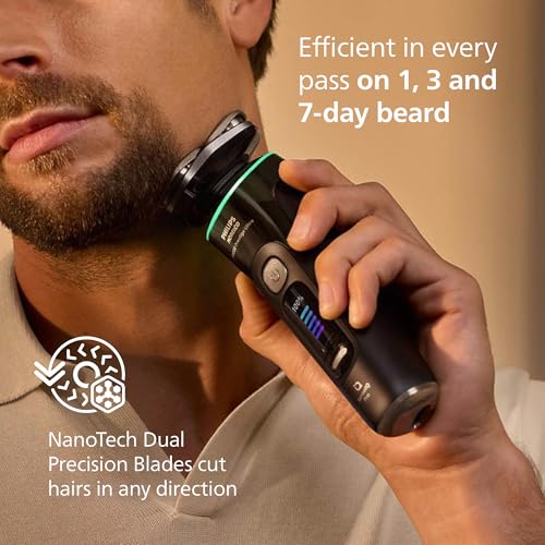 Introducing Next Level closeness from Philips Norelco, the world’s #1 electric shaving brand. Achieve extreme closeness with Norelco’s Best shaver – delivers below skin-level, -0.08mm close shave and ultimate skin comfort. Day-long close shave, even on hardest-to-shave areas. NEW 360° Precision Flexing Heads for 20% more precision in hardest to reach areas vs predecessor. Efficient in every pass even on 1-3-7-day beard. Powered by AI : 5 Custom Shave Modes and Live-Action dual-function Pressure + Motion light sensor. Intelligently senses, adapts and customizes to your skin with Sense IQ Pro technology. *vs predecessor ** vs no coating