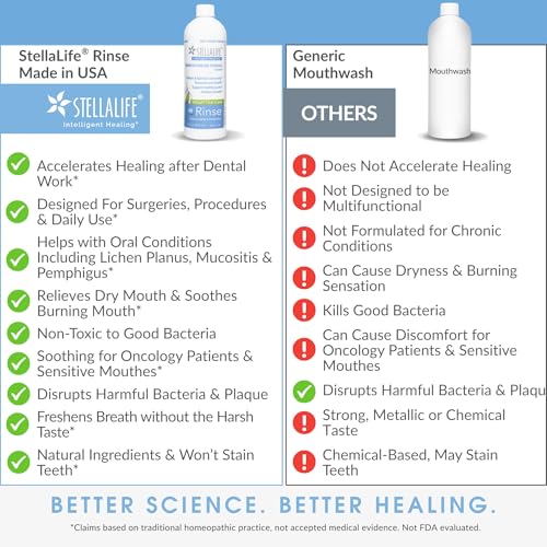 StellaLife Oral Rinse: Dry Mouth Mouthwash, Natural Daily Dental Hygiene for Healthy Gums, Fresh Breath, Sugar Free, Propolis, Xylitol, Advanced Healing After Dental Procedures (16 fl oz, Spearmint)
