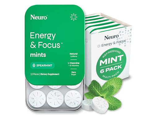 NeuroGum Energy & Focus Mints (Spearmint, 72 Pieces) | 40mg Natural Caffeine + L-Theanine + Vitamin B12 & B6 | Sugar Free Nootropic Cognitive Brain Performance Supplement
