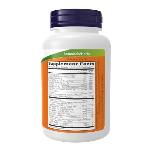 NOW Foods Supplements, Energy Dietary Supplement (lncludes B Vitamins, Green tea, Panax Ginseng and Rhodiola), 90 Capsules