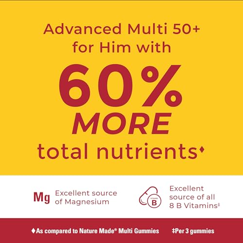 Nature Made Advanced Multivitamin Gummies 50 + for Him, Mens Multivitamins Gummies with Magnesium Citrate, Vitamin D3, Zinc, All 8 B Vitamins, 84 Multi Vitamins, 28 Day Supply