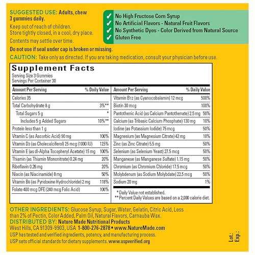 Nutritional support supplement: contains one 90 count bottle of Nature Made Advanced Multivitamin Gummies for Adults for a 30-day supply