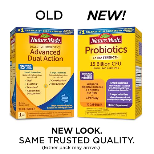 Probiotics for digestive health: contains one 30 count bottle of Nature Made Probiotics Extra Strength Capsules 15 Billion CFU for a 30-day supply