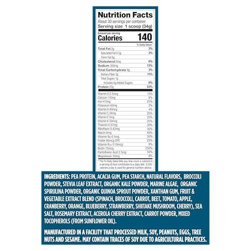 MORE THAN JUST PROTEIN. 25% DV OF 12 vitamins and minerals per serving, four grams of fiber, one gram of omega-3 ALA and Antioxidants. From real, plant-based ingredients to give you a head start on your daily essentials.
