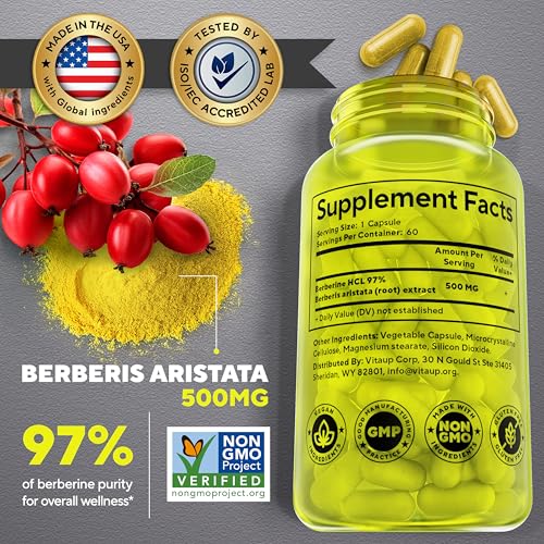 TESTED FOR PURITY: VitaUp berberine 500mg is independently tested to verify its purity and potency. Our berberine supplement is a quality addition to your daily wellness routine as part of a balanced lifestyle.*