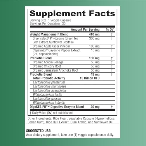 Supports Gut & Bloating: Contains Probiotics & organic prebiotics with natural green tea extract. With our weight management probiotics you can be assured that our formula has been formulated to you on your weight management journey