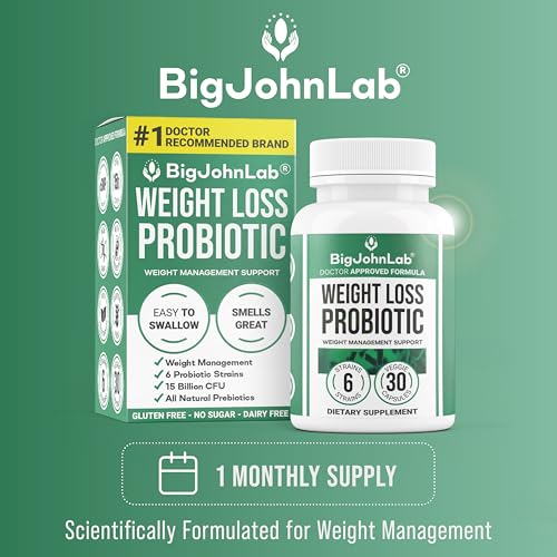 BIGJOHNLAB® – Probiotics for Weight Management & Bloating – 6 Probiotic Strains – Prebiotics – Key Ingredient Cayenne & Green Tea – Supports Gut Health – Weight Management for Women & Men – 30 CT