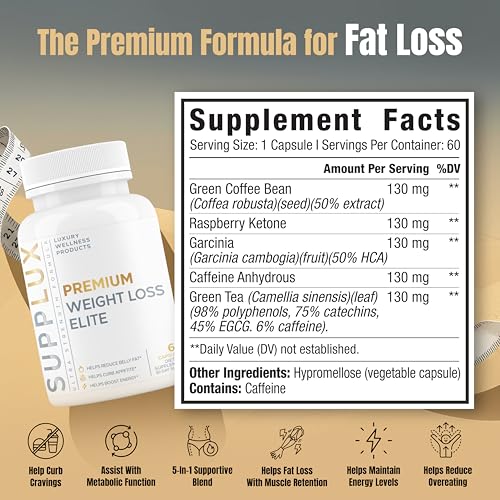 Premium Weight Loss Elite | Supports GLP-1 Pathway Function | Weight Loss Pills for Women, Fat Burner for Men | 5 Strategic Backed Ingredients | 3rd Party Tested Supplement – 60 Pills