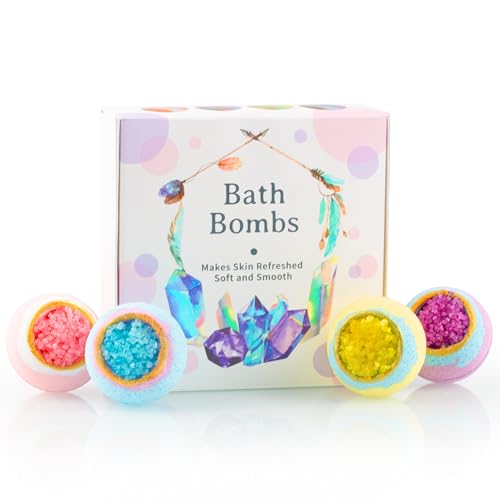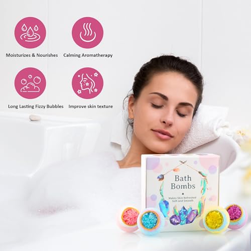 4 Pcs Crystal Sea Salt Bath Bomb Set – Natural Essential Oil Bath Fizzies for Women, Organic Relaxing Bubble Bath, Self-Care Gift Set for Her, Wife, Girlfriend, and Him