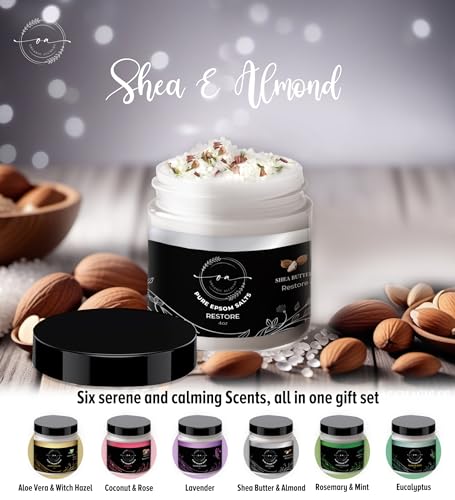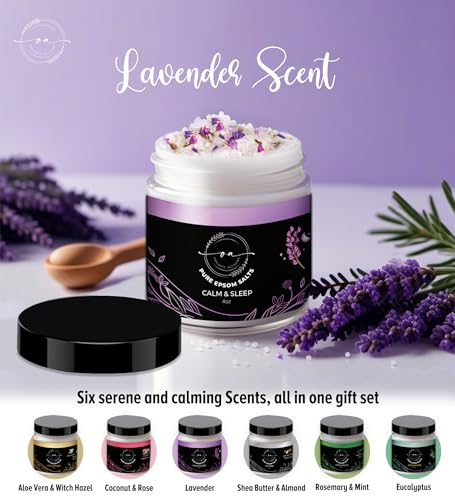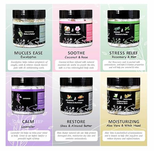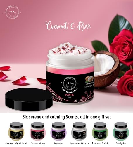 Epsom Bath Salts Gift Set, Relaxing Spa Salt & Essential Oils, Bubble Bath Soaks – Lavender, Eucalyptus, Coconut, Shea Butter, Rose Mary & Aloe Vera Self Care Gifts for Women (6 Pack)