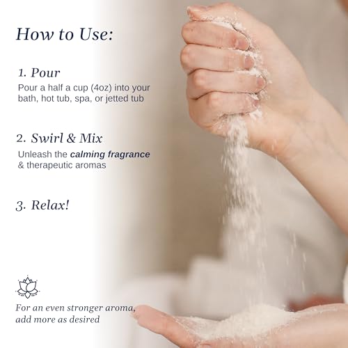 MINERAL-RICH NOURISHMENT: A premium blend of Epsom & Dead Sea salts, plus magnesium, biotin, niacin, and hyaluronic acid, melts effortlessly into your water—leaving your skin soft and delicately conditioned after every soak.