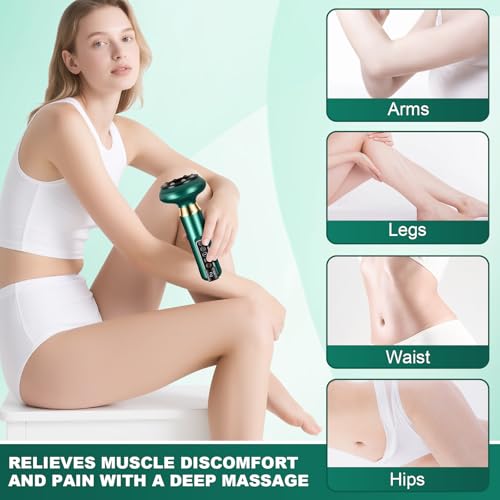 [Powerful Massage Tool]: This electric cellulite massage device features natural bian stones, eight rolling steel balls, and a soothing heat setting that quickly relaxes muscles and boosts blood flow. It’s your go-to device for easy, effective at-home massages and gua sha-style relief