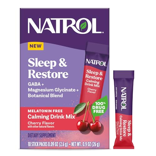 Natrol Sleep & Restore Calming Drink Mix with Magnesium Glycinate, Magnesium Sleep Aid, Melatonin-Free, Cherry, 10 Stick Packs